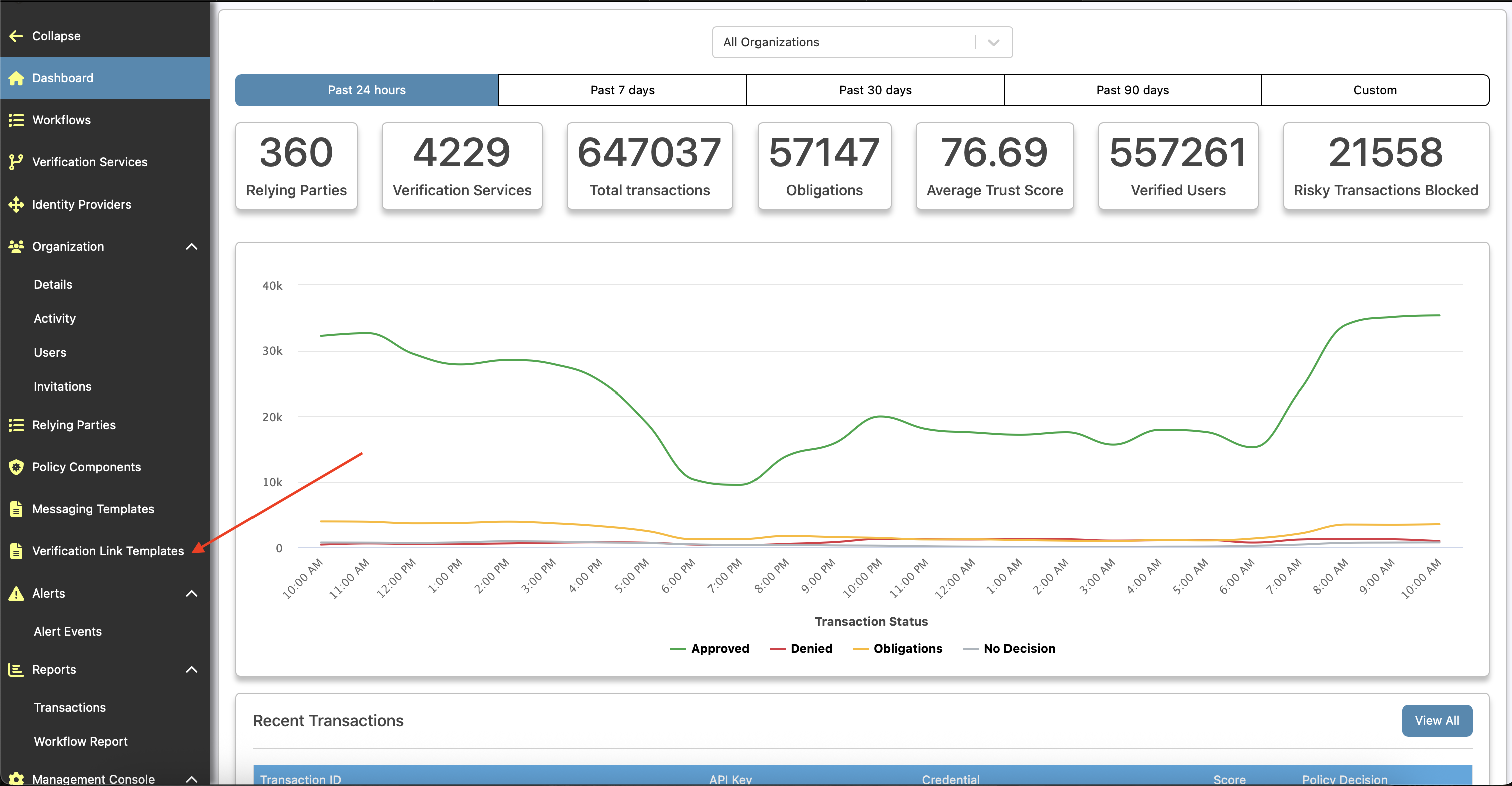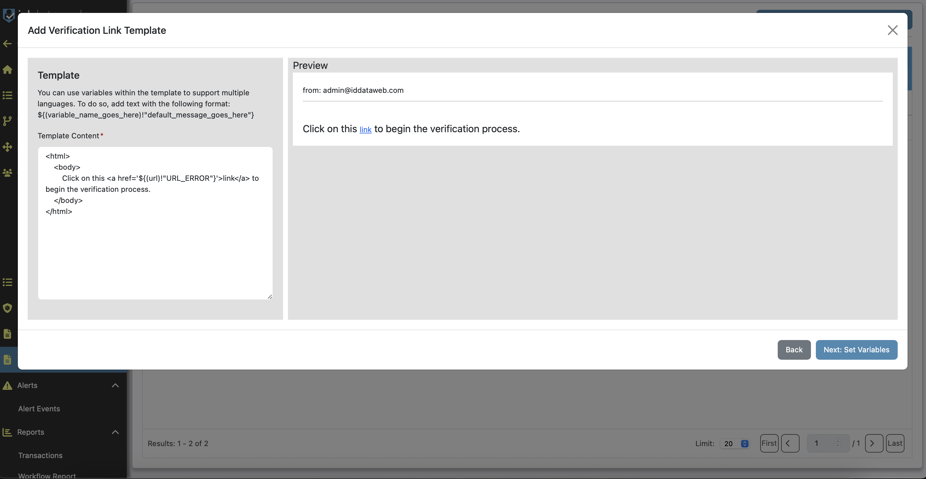 - In the AXN Admin Console, navigate to the left-hand panel and select "Verification Link Templates"